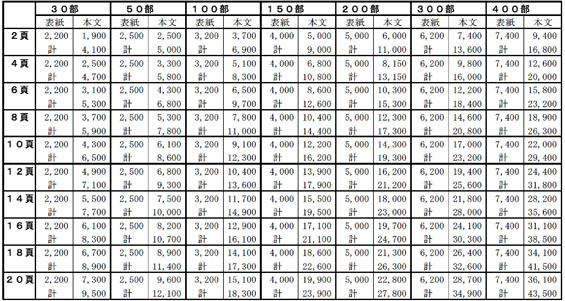 別刷:著者無料の50部を越える分については下の表に基づき算出し,印刷所から著者へ請求する.